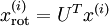 – u1에 대한 x 의 투영. u1이 열벡터이므로, 이 투영의 결과는 u1 즉, eigenvector로 추출된 차원의 값들로만 정의가 됨.